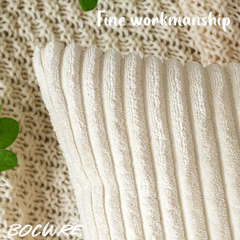 4er-Set Bocwre Ultra-Weiche Cord-Kissenbezüge – Boho-Chic Gestreiftes Design, Einfarbig, Reißverschluss – Maschinenwaschbar für Sofa, Bett, Wohnzimmer & Auto-Dekor, Dekorative Kissen